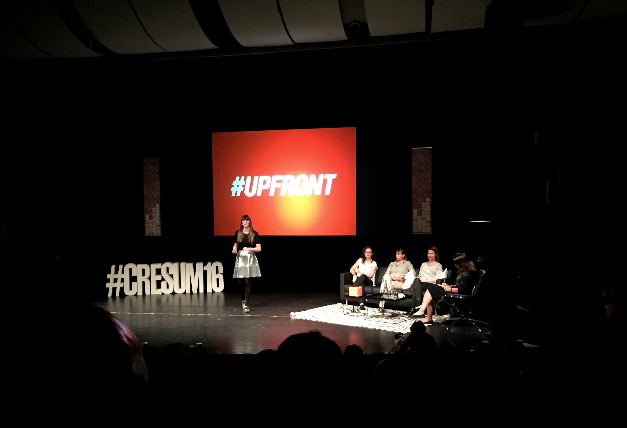 - I was absolutely horrified by the way the compère talked both to me and to the audience about diversity and women speakers. If this ever happens again I will take the mic and remind the audience that I do not represent the entire female race. This experience led to me starting #upfront. Thank you to everyone in the audience who talked to me on the day, wrote to me afterward and helped me figure out a way to tackle this monstrous problem. A reminder to Jason, Jon, Matt, Gavin, Mike, Jim, Jon and Ian there are no more excuses. There is now a very easy way for us to all to work together to make stages more diverse. I hope you’ll all join me on my mission to sure what we see in this picture never happens again.