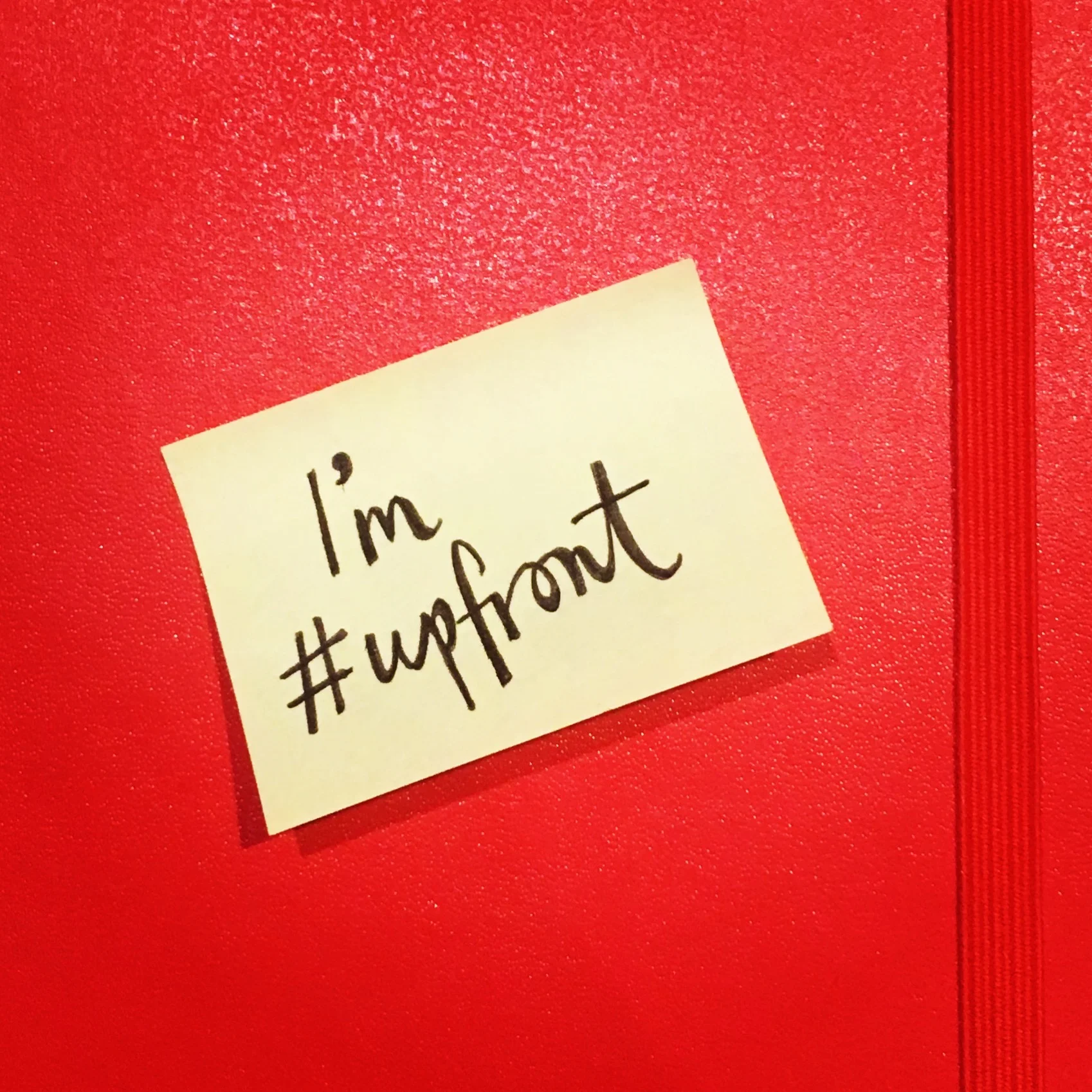 I designed #upfront by sticking this post-it on the front of my red jotter and putting it on the internet.