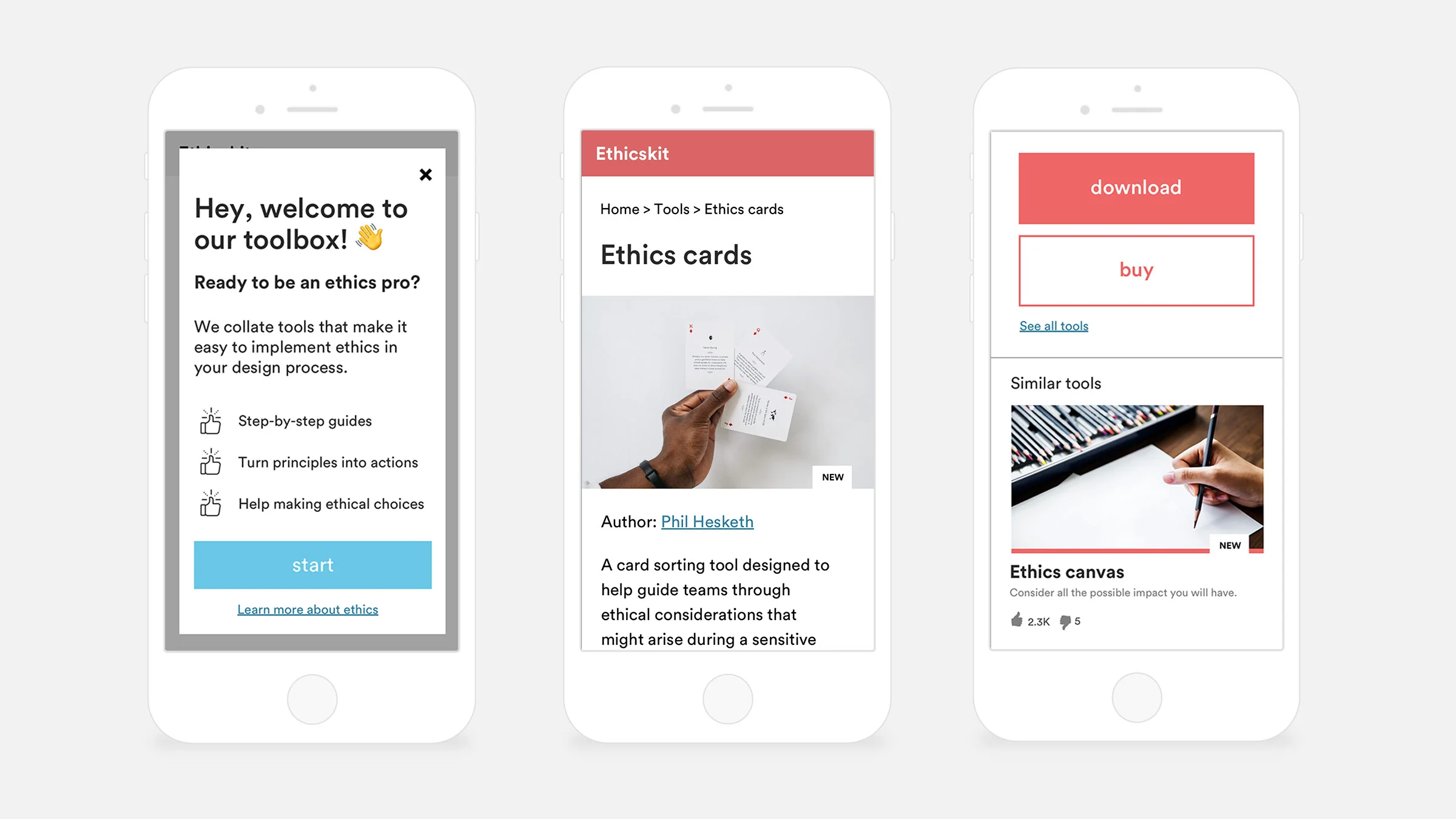 I love toolkits to help people create better things. I’ve been fortunate enough to work with the lovely Phil Hesketh on starting to bring Ethics Kit to life, it’s a platform of methods and tools for teams to include ethics in their design processes.