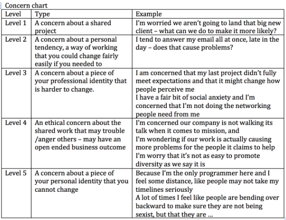 Our team at NOBL recently tried out Google’s method of Anxiety Party. The experience led us to create this chart which maps levels of disclosure from easiest to hardest (ie least personal to most personal) and can be adapted for vulnerability discussions.