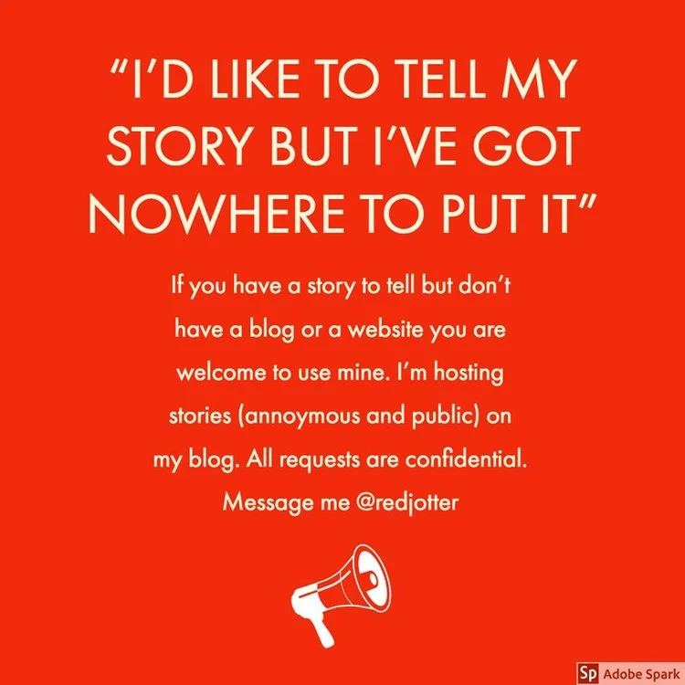 I know some of you would like to tell your story and you don’t because you don’t have a website or a blog to put it on. NOW you do! I’m hosting stories (anonymous and public) on my blog. I can truly say from my own experience that the world will listen and be kind ❤️ Message me or tag someone who has a story the world needs to hear. (Ps. a list will do... no need for essays or eloquent prose) There's no deadline. Just know this offer is always there.